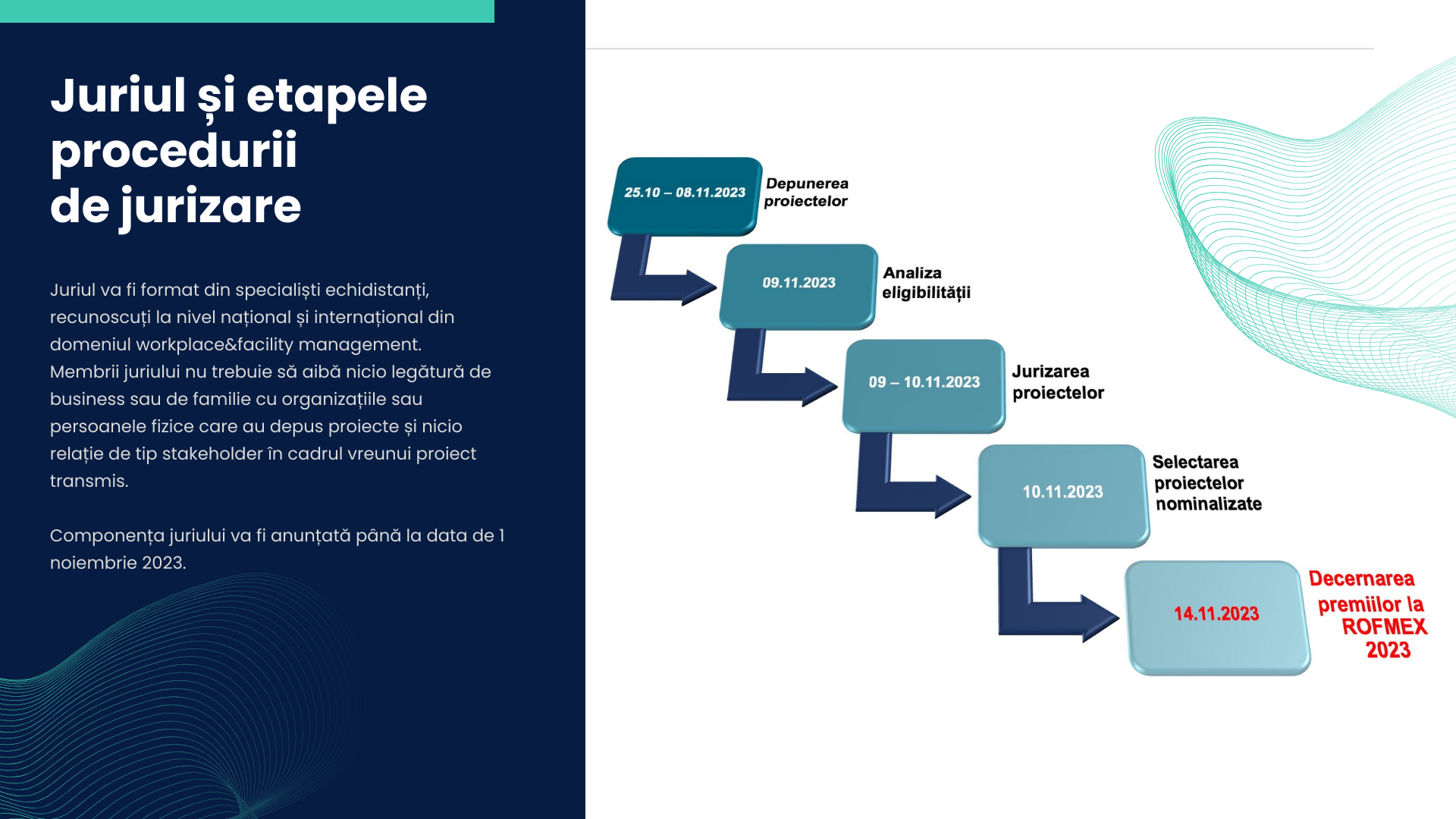 Descarca aici mai multe detalii despre concurs, condițiile de participare, criteriile de acordare a premiilor, juriu și etapele de jurizare, timeline concurs. (aici incarca pe tot textul PDF Premiile ROFMA_2023)